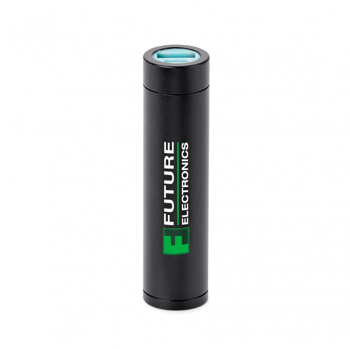 Metal power bank with a single USB port that supplies DC 5V/1A output current and LED charging status indicators, Includes a USB/micro-USB charging cable.